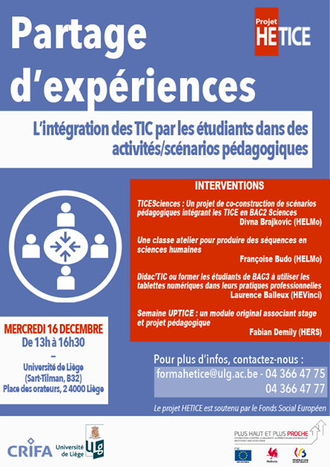 Ce partage d'expériences s'est déroulé le mercredi 16 décembre 2015 l'Université de Liège.